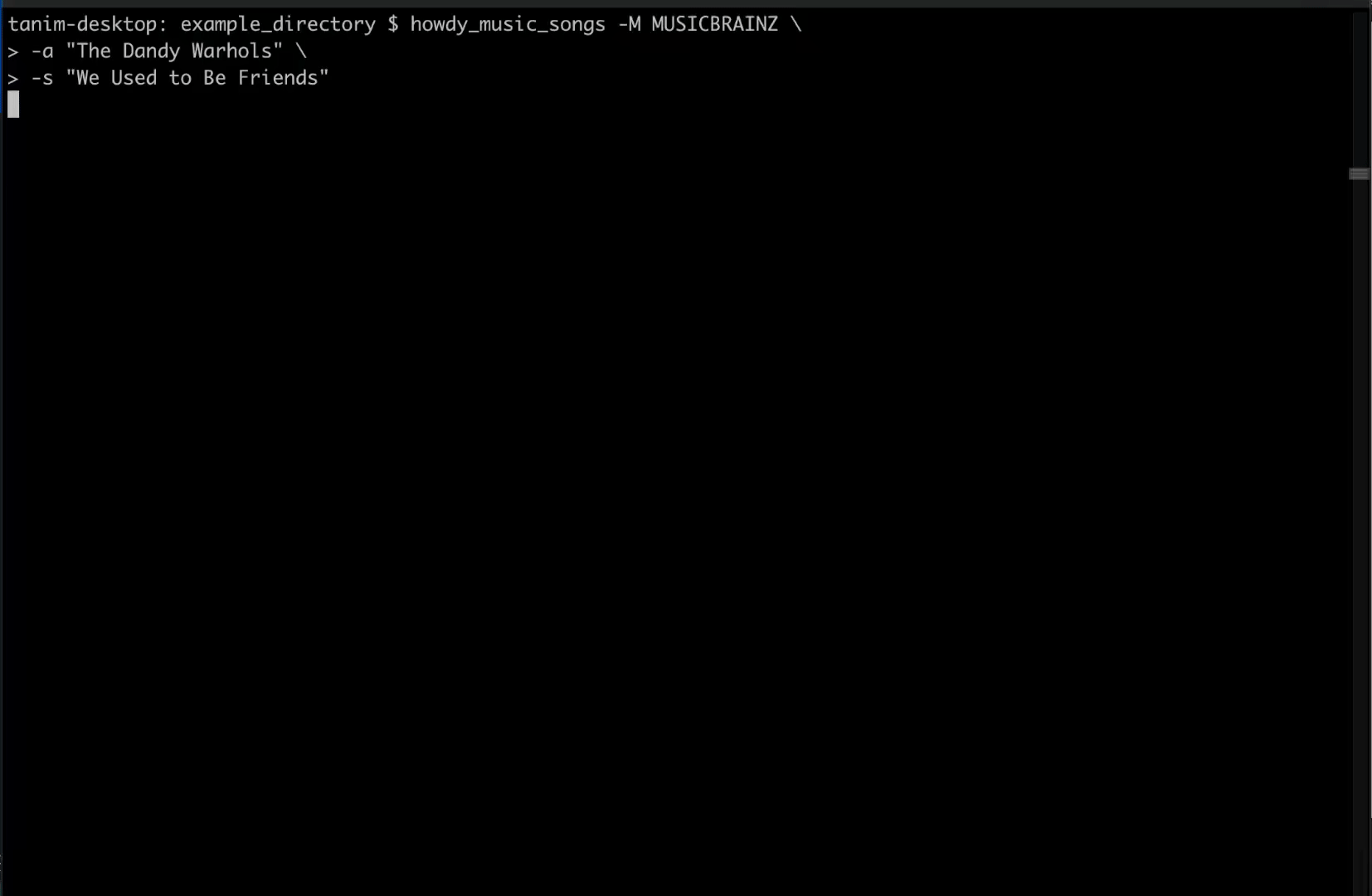 usage: howdy_music_metafill [-h] -s SONG_NAMES -a ARTIST_NAME